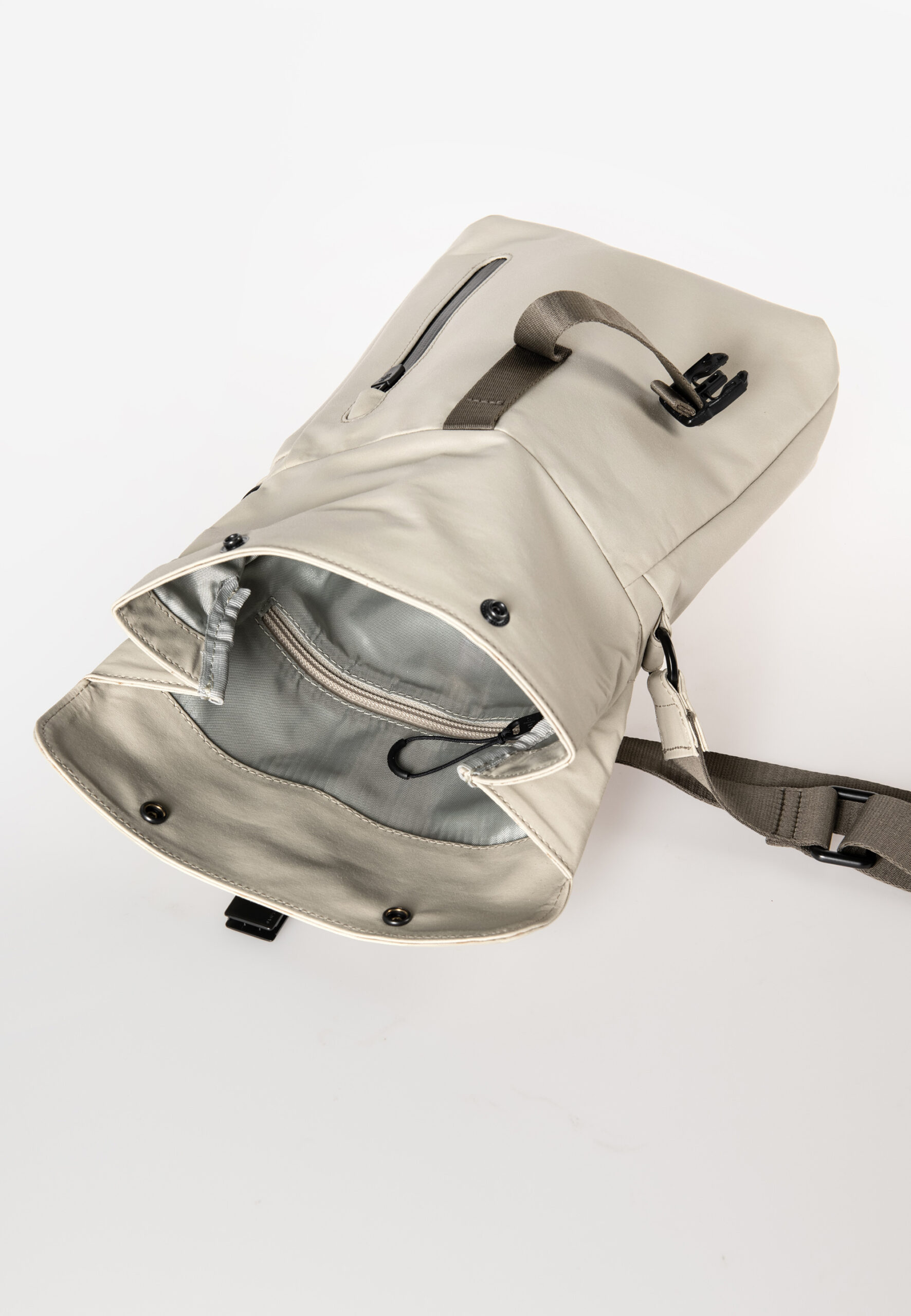 Μεσαίο-μικρό τσαντάκι που διπλώνει κλείνοντας, ανδρικό/unisex, για τον ώμο ή ταχυδρομικό, με πολύ καλή ασφάλεια για να προστατέψετε τα απολύτως απαραίτητά σας. Μπορείτε να ‘παίξετε’ λίγο με το μεγεθός του καθώς ξεδιπλώνοντάς το κερδίζετε λίγο χώρο ακόμα – συνεχίζει όμως και κλείνει με ασφάλεια! Υφασμα ιδιαίτερα ελαφρύ, άνετο και φυσικά υδατοδιαλυτό!