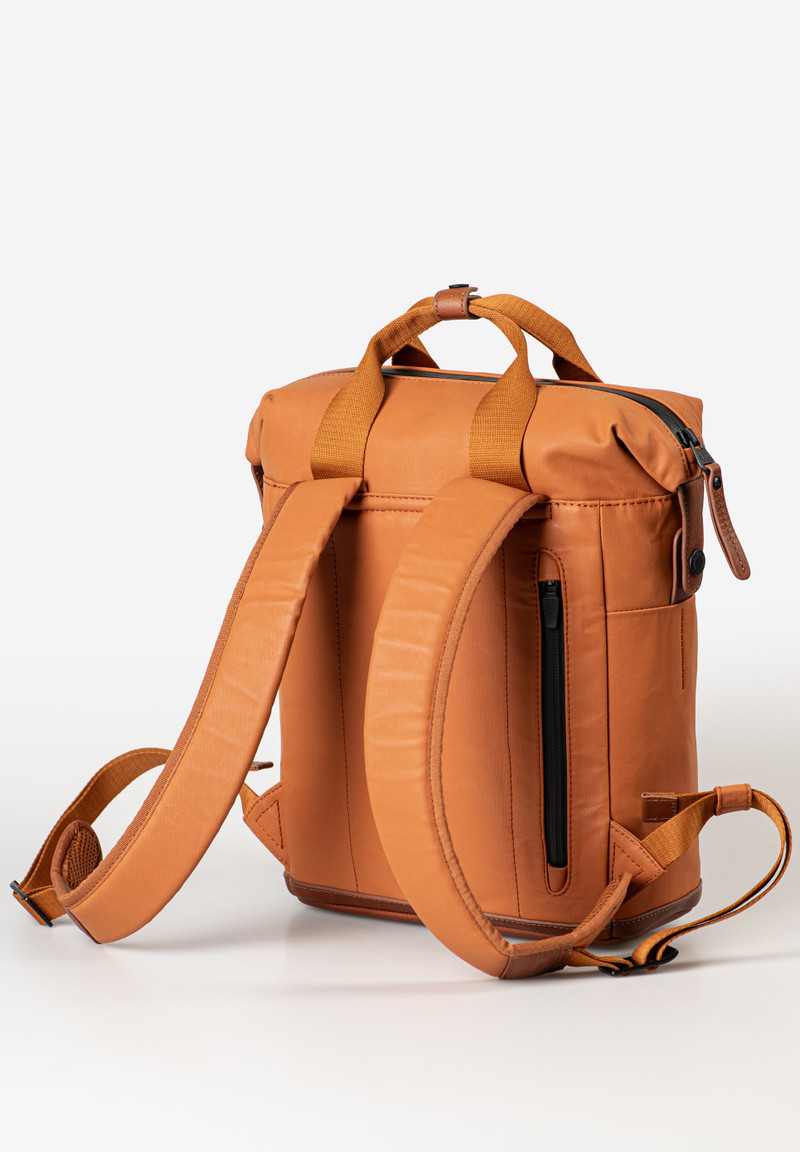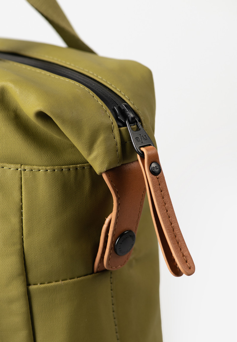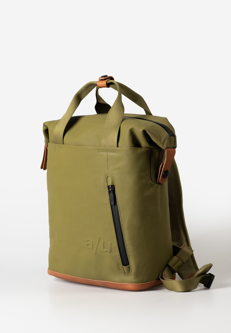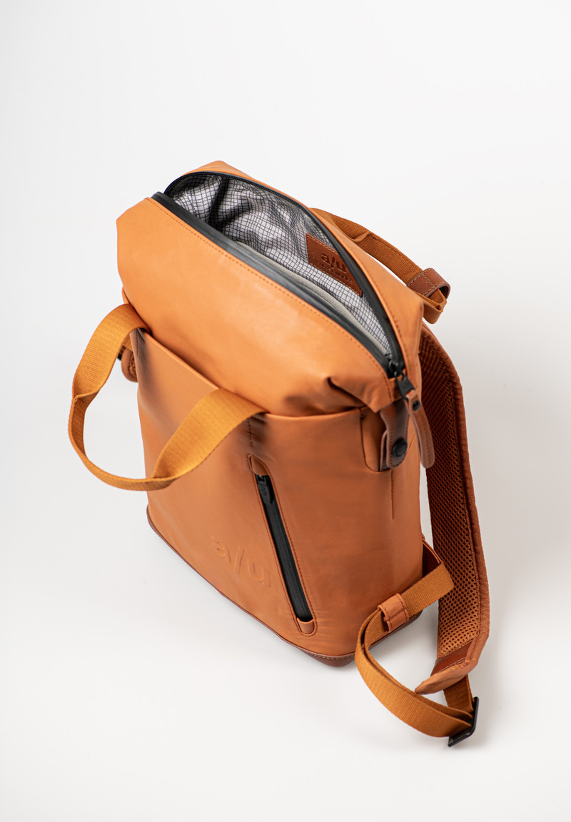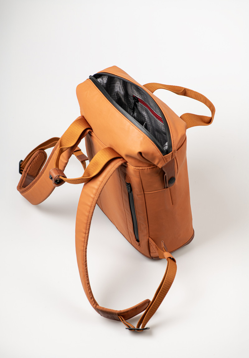 Υλικό: ιδιαίτερα ελαφρύ, βαμβακερό ύφασμα με υδατοαπωθητικό φινίρισμα το οποίο με τον καιρό αποκτάει πατίνα, αδιάβροχα φερμουάρ και δερμάτινες λεπτομέρειες